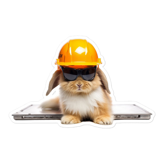 Satin Angora Contractor Bunny Sticker - Stickerfy.ai